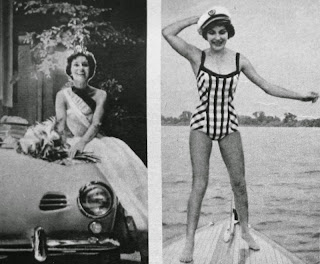 GÜZEL CARMELA'NIN ANNESİ GÜZELLİK KRALİÇESİ OLMASINI İSTEMİYORDU... Haziran ayında güneybatı Almanya'da Kara ormanların tam ortasında bulunan ve Almanya'nın en lüks ve en zarif şehri sayılan Baden-baden'de her yıl olduğu gibi bir güzellik kraliçesi seçimi daha yapıldı. Almanya'nın 12 şehrinden gelmiş güzeller burada boy gösterdiler ve neticede içlerinden birisi kraliçelik tacını giydi. Gel gelelim bu seçimin bundan öncekilere nazaran bambaşka bir özelliği bulunmaktaydı. Jüri karşısına çıkan bir düzine dilberin arasında birinci ilan edilen 19 yaşındaki Carmela Künzel ailesine danışmadan gizlice ünlü kaplıcalar şehrine gelmiş ve burada şansını denemişti. Şayet birinci seçilmese idi mesele yoktu lakin güzeller güzeli ilan edilince iş birden değişiverdi. Öyle ya batı Berlin üniversitesinin İngiliz filolojisi bölümünde uslu uslu okuyan bir kızın muhafazakar ailesinin rızası olmadan bir maceraya atılması kolay hazmedilir bir şey değildi. Kendisine kraliçe seçildikten sonra hediye edilen kar gibi bembeyaz spor araba ile Berlin'deki evinin önünde durunca annesi büsbütün çileden çıktı ama kızı ile için için iftihar etmekten de kendisini alamadı. Carmela Künzel şimdi ikinci mükafatı olan Amerika seyahati için annesini kandırmakla meşgul... Üstte; Sol : 19 yaşındaki üniversite talebesi Carmela Künzel "Miss Germany" ilan edildikten sonra kendisine hediye edilmiş spor arabası ile basın mensuplarına poz verirken görülmekte. Sağ : Siyah saçlı, kahverengi gözlü Carmela Künzel'in piyano ve kitaplarından sonra en çok sevdiği şey spordur. Resimde Carmela su sporu esnasında görülmekte... |