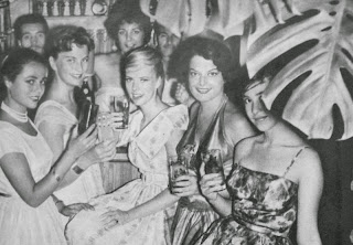 GÜZELLER EĞLENİYOR BAR BAŞINDA : (Soldan sağa) İsrail, İzlanda, Hollanda, Danimarka, Yunanistan ve Türkiye güzelleri Moda'daki evin barında görülmektedirler. Milletler arası güzellik müsabakasına iştirak etmek üzere ağustos başında İstanbul'a gelen Avrupalı güzeller şehrimizin tanınmış iş adamlarından birinin Moda'da evinde verdiği kokteylde çocuklar gibi eğlendiler. |