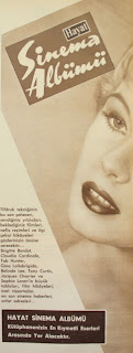 Hayat Sinema Albümü Tifdruk tekniğinin bu son şaheseri sevdiğiniz yıldızları, beklediğiniz filmleri, nefis resimleri ve ilgi çekici hikayeleri gözlerinizin önüne serecektir... Brigitte Bardot, Claudia Cardinale, Tab Hunter, Gina Lollobrigida, Belinda Lee, Tony Curtis, Jacques Charrier ve Sophia Loren'in büyük tabloları, film hikayeleri, özel röportajlar, en son sinema haberleri, artist adresleri... HAYAT SİNEMA ALBÜMÜ Kütüphanenizin en kıymetli eserleri arasında yer alacaktır...1959 |