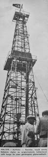 TÜRK PETROLÜNE BİR ÇELİK YOL DAHA ! Doğu ve Güneydoğu Anadolu'daki petrol çalışmaları sonunda Trakya'da da petrol araştırmaları son yıllar içinde hızlanmış durumdadır. Trakya'da çeşitli şirketler tarafından büyük ölçüde açılmış araştırma kuyuları henüz gereken neticeyi vermemiş olsada yerli ve yabancı uzmanlar bu hususta çok ümitli görünmektedir. Bu cümleden olarak NV. Turkse Shell ile Deilman Petrol şirketi Trakya araştırmaları için aldıkları ruhsatlarını birleştirerek geçenlerde Edirne, Uzunköprü civarında "Maltepe 1" adı ile büyük bir sondaj kuyusunu faaliyete geçirmişlerdir. Bu sondaj tesisatının motoru 1260 beygir gücündedir. 3600 metre derinliğe kadar inme imkanına sahiptir. 2-3 aylık çalışma programı ile Maltepe 1'in çok pahalıya mal olan delme ameliyesinin neticelendirilmesi ve bu sahada petrol bulunup bulunmadığının anlaşılması kuvvetle muhtemeldir...1959 |