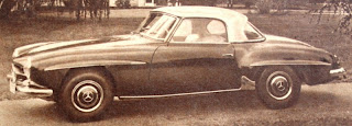 MERCEDES BENZ 190 SL COUPE 1960 Meşhur Mercedes Benz firmasının 1959 Paris otomobil fuarında sergilediği bir başka model 190 sl coupe, Bu araba Alman arabalarının en güzeli olarak adlandırılmakta. 1960 modeli görüldüğü üzere coupe olarak tasarlanmış yalnız camlar biraz daha büyük tutulmuştur. 120 beygir gücündeki araba 4 silindirli ve 4 viteslidir. Almanya'da satış fiyatı 17.100 marktır...(1959 Hayat dergisi) |