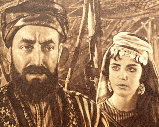 KARACAOĞLAN'IN KARA SEVDASI... Zamanımıza kadar canlılığını kaybetmemiş olan macera kahramanlarını, ünlü halk ozanı Karacaoğlan'ı bu defa beyaz perdede Nuri Altınok temsil edecek. Altınok'un karşısında yine Devlet tiyatrosundan Tijen Par olacak. Fotoğrafta Tijen Par, filmin bir sahnesinde Hayri Esen ile birlikte görülmektedir. Filmin rejisörü ise Atıf Yılmaz'dır...1959 |