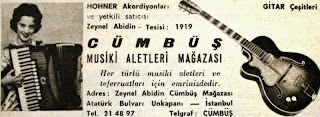 Hohner akordiyonları ve gitar çeşitleri yetkili satıcısı Zeynel Abidin - Tesisi : 1919 CÜMBÜŞ MUSİKİ ALETLERİ MAĞAZASI Her türlü musiki aletleri ve teferruatları için emrinizdedir. (1964) Yorgun vaziyette dükkanın karşısında otururken tabelada yer alan 1900 yılı ibaresi gözüme takıldı ve fotosunu çekiverdim. Daha önceden yayınlamış olduğum yukarıdaki tesis tarihi 1919 ibaresi aklıma geldi. Hangisi doğru acaba ? (2016) |