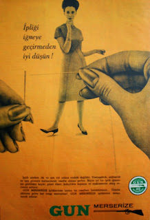 İpliği iğneye geçirmeden iyi düşün ! İplik alırken ilk ve son rol renkte değildir. Yumuşaklık, sağlamlık ve tam güvenle kullanılacak vasıfta olması şarttır. Böyle iyi bir iplik iğnenizin gözünden kayar, güzel diker, kolaylıkla kopmaz ve makinenizin dikiş verimini arttırır. GUN MERSERİZE ipliklerinde bütün bu vasıfları bulabilirsiniz... Üstelik aklınıza gelen her rengi mevcuttur ! GUN MERSERİZE ipliklerini daima tercih ediniz ! (1964) |