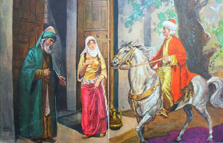 Hayat mecmuasının 1964 yılında orta poster olarak yayınlamış olduğu Ressam Münif Fehim Özarman'a ait "Bala Hatun" tablosu. Seri "Osmanlı saraylarında güzel kadınlar 1" olarak başlamakta. Tablonun teması : Osman Gazi ile Bala hatun'un karşılaşması konusunu içermektedir. Solda Şeyh Edebali, ortada Bala hatun, sağda Osman Gazi görülmektedir... |