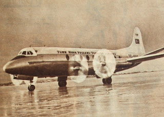 TÜRK HAVA YOLLARI VISCOUNT UÇAKLARI ARTIK AVRUPA SEMALARINDA... Viscount uçakları yurt içerisinde yapmakta oldukları muntazam seferlere dış hatları da ilave etmiştir. Haftada üç gün Ankara, İstanbul, Atina ve Roma'ya uçan bu modern vasıtalarla Roma'dan Thy biletleri ile Avrupa'nın her tarafına gitmek mümkündür. Thy'nin diğer mühim bir dış hattı da Ankara-İzmir-Atina hattıdır. Altta bu uçaklar ile seyahat eden yolcuları veriyoruz... |