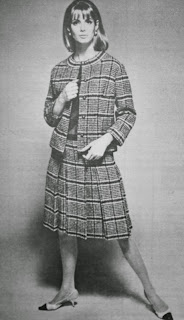 Eteğe kalçalardan aşağı serbest bırakılan kontur pli ile bolluk verilerek bir hususiyet kazandırılmış kareli yünlü kumaştan spor bir takım elbise modeli...