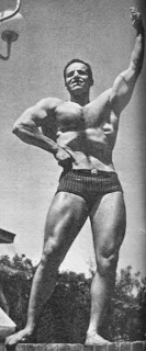 MISIRLI ERKEK GÜZELİ Mısır ordusundan 28 yaşındaki yüzbaşı Abdülhamid El Gindi 1963 yılında Londra'da kazandığı "Mr. Universe - Dünya Erkek Güzeli" unvanını bu yıl da Paris'teki yarışmada muhafaza etmek için antrenmanlarına aralıksız devam ediyor. Haftada beş gün halter ile çalışan Abdülhamid, yemek rejimlerine inanmamakta ve normal öğünlerini yemektedir. Sigara ve içki kullanmayan Dünyanın erkek güzeli, mükafat olarak geçen yıl Cemal Abdül Nasır'dan 25.000 lira almıştı...1964 |