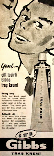 Yeni... Çift tesirli Gibbs tıraş kremi. Kolay tıraş Gibbs tıraş kremi gayet kesif bir köpük yapar. Milyonlarca köpükçük sakalları sarar ve derhal yumuşatır. Tıraş olmak, pırıl pırıl bir tıraş olmak çok kolaylaşmış olur. Sıhhatli cilt G 11 ihtiva eden Gibbs tıraş kremi cilt için mükemmel bir antiseptiktir. G 11 size genç, sıhhatli ve daima taze görünen bir cilt sağlar. G 11'li Gibbs TIRAŞ KREMİ (1964) |