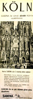 KÖLN SABENA ile şimdi direkt Köln'e uçabilirsiniz. Ayrıca SABENA size 2 avantaj daha sağlıyor : Köln/Wahn hava alanına vardığınız zaman Almanya'nın başşehri Bonn'a sadece 20 km, Düsseldorf şehrine ise 41 km. mesafedesiniz. Köln'den bu iki merkeze de muntazam otobüs servisi mevcuttur. Yetkili seyahat acenteniz veya SABENA size her türlü bilgiyi vermeye hazırdır. SABENA ile en çok ihtimam gören yolcu olacaksınız... SABENA BELÇİKA HAVA YOLLARI (1964) |