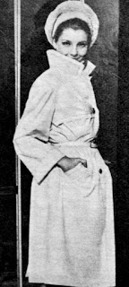Arkasında tek plikaşesi olan, robalı, takma kollu, beli kemerle bağlanmış şık bir yağmurluk görülmektedir... Hollandia Kattenburg 1964 |