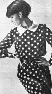Lacivert üzerine beyaz puanlı margizet kumaştan, kolları geniş manşetli oldukça şık bir rop.