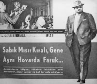 SABIK MISIR KRALI GENE AYNI HOVARDA FARUK... Romalıların "Şişko" lakabını taktıkları eski hükümdar yiyor, içiyor ve bol bol sefa sürüyor... Üstte; Faruk tahtından, tacından olduktan sonra Mısır'dan kaçıramadığı hazineleri Kahire'de haraç-mezat satılmıştı. |