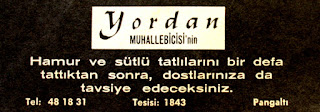 Yordan MUHALLEBİCİSİ'nin Hamur ve sütlü tatlılarını bir defa tattıktan sonra, dostlarınıza da tavsiye edeceksiniz. Tesisi : 1843 Pangaltı - İstanbul (1964) Fotoğrafta ise Osmanlı döneminin Muhallebi satıcısı görülmekte. (Marchand de mouhalébi, Constantinople) Bir diğer muhallebici grubu. |