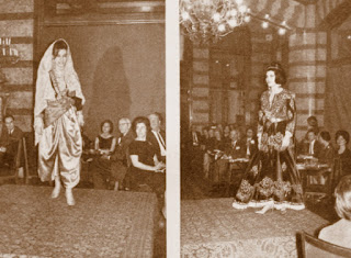 TÜRK DESENLERİNDEN MÜLHEM BİR DEFİLE TERTİP EDİLDİ... Türk-Amerikan üniversiteliler derneği kadınlar grubu eğlence ve gelir komitesi 3 nisan 1964 cumartesi günü pek başarılı geçen bir kokteyl defile tertip ettiler. Sosyal hizmetler komitesi yararına yapılan ve İstanbul olgunlaşma enstitüsü tarafından hazırlanan defilenin geliri hastanelerimize sarf edilecektir. Olgunlaşma enstitüsünün itina ile dikmiş olduğu kıyafetlerin çoğu (Cepken ve şalvardan ibaret Türk kıyafeti (üst sol), Türk motifli kreasyon (sağ).) eski Türk desen ve işlemelerinden ilham alınarak modernize edilmiş motiflerle bezenmişti. Defilede otuzdan fazla modern kıyafet ve değişik milli elbiselerimiz birbirinden güzel dört Türk mankeni tarafından teşhir edilmiştir. Defiledeki hakim renkler : Açık bejden başlamak üzere en koyusuna kadar değişik tonlarda kahverengi ve siyah-beyaz karışımı idi. Ayrıca senenin gözde rengi pembe de göze çarpmakta idi. Elle işlenmiş elbiselerin fiyatları 450 ile 1.950 lira arasında değişmekteydi. "İnci Su" adlı kıyafet pek beğenildi...(İnci Pirinççioğlu) |