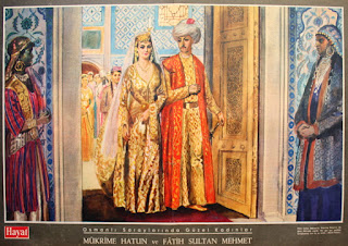 OSMANLI SARAYLARINDA GÜZEL KADINLAR MÜKRİME HATUN ve FATİH SULTAN MEHMET Fatih Sultan Mehmet ile Mükrime hatunun düğünü Edirne'de yapıldı. Her gün ayrı şenlikler tertiplenerek tam üç ay sürdü. (Münif Fehim Özarman) OSMANOĞULLARI VE DULKADİROĞULLARI ARASINDAKİ MÜNASEBET Osmanoğulları ile Dulkadiroğulları arasındaki akrabalık bağları eskidir. İlk defa müstakbel Fatih Sultan Mehmet'in, Dulkadiroğlu Süli Bey'in kızı Sitti Mükrime'yi alması ile başlamış değildir. Nitekim bu evlenme de, iki Türk hanedanı arasındaki son akrabalık münasebetini teşkil etmemiştir. Bilindiği gibi sultan 2. Murad'ın ve Yavuz Sultan Selim'in, yani Osmanlı hükümdarlarından ikisinin anneleri, Dulkadiroğlu prensesleridir. Yani Fatih'in babaannesi de Dulkadiroğlu'dur. Mükrime hatun, Veliaht şehzade Mehmet ile Edirne'de evlenmiştir. Edirne şehrini pek sevmiştir. Ölünceye kadar Edirne saray-ı hümayunun da yaşamıştır. İstanbul'a belki gelmiştir fakat bu hususta elimizde kayıt bulunmamaktadır. Edirne'de pek çok hayır eseri yaptırmıştır. Bunların bir kısmı halen mevcuttur. Bu sultan Edirne'de gömülüdür. Fatih'in İşkodra muhasarasında kullandığı muazzam toplardan birisini Mükrime hatun, masraflarını şahsi parasından vererek döktürmüştü ve adını "Mehmet" verdirtmişti....(1964 Hayat Dergisi) |