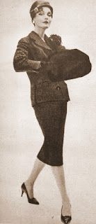 Tayyörün eteği oldukça dardır. Boyu dizin altında dört parmak uzamıştır. Tayyörün ceketi spor tarzlı, dört düğme ile iliklenmektedir... Pierre Balmain 1959