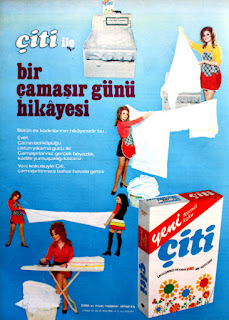ÇİTİ İLE BİR ÇAMAŞIR GÜNÜ HİKAYESİ Bütün ev kadınlarının hikayesidir bu... Evet. Çiti'nin bol köpüğü, üstün yıkama gücü ile çamaşırlarınız gerçek beyazlık, kadife yumuşaklığı kazanır. Yeni kokusuyla Çiti çamaşırlarınıza bahar havası getirir. YENİ FORMÜL, KOKU ÇAMAŞIRINIZI YIKAMAK ÇİTİ'NİN VAZİFESİDİR. EVMA ev ihtiyaç maddeleri sanayi a.ş. EVMA bir DEVA HOLDİNG kuruluşudur. (1972) |