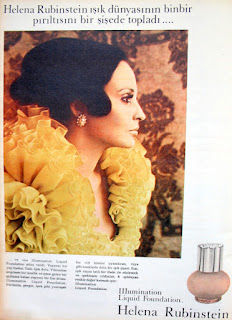 Helena Rubinstein ışık dünyasının 1001 pırıltısını bir şişede topladı... ... ve ona Illumination Liquid Foundation adını verdi. Yepyeni bir yüz ifadesi, tatlı, ışık dolu. Yüzünüze erişilmez bir incelik ve içten gelen bir ışıldama katan yepyeni bir fondöten : Illumination Liquid Foundation. Pürüzsüz, gergin, ipek gibi yumuşak bir cilt hissini uyandıran rüya gibi renklerle dolu bir ışık şişesi. Sizi ışık saçan tatlı bir ifade ile süslemek ve ipekleşen cildinize 6 ışıldayan renkle değer katmak için : Illumination Liguid Foundation... HELENA RUBINSTEIN (1972) |