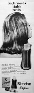 Saçlarınızda bin bir pırıltı... Işık saçan, pırıl pırıl harikulade saçlar... Kepekten arınmış... Tertemiz. Saçınızın böyle bir görünüş kazanmasını istiyorsanız kullandığınız şampuan Blendax olmalı. Blendax saçlarınız için tam aradığınız şampuandır...1972 |