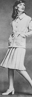 Nina Ricci'de bu mevsim kol takışı ve omuzlarda yenilikler göze çarpmakta. Bu pembe yünlüden tayyörün omuz hattı modacının son buluşunu aksettirmekte. Yakası kapalı ve tek sıra düğmeli uzun ceket ince deri kemerle bağlanmıştır. Etek geniş plili...1972 |