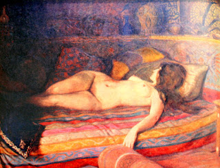 Güzel sanatlar akademisi müdürlüğü sırasında verimli çalışmalarda bulunan Namık İsmail'in güzel bir "Çıplak"ı. Türk resim sanatının nispeten genç yaşta kaybettiği bu sanatçı, sevdiği kadını kotrası ile Büyükada'ya götürerek onun bu "nü" tablosunu yapmıştır. Kemal Erhan bu eseri 1967'de resmin yapıldığı Büyükada'daki köşkün sahibinden satın almıştır. Ebadı : 1.75 cm x 1.35 cm'dir...(1972 Hayat dergisi) |