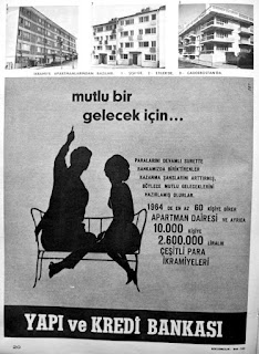 İKRAMİYE APARTMANLARINDAN BAZILARI : 1- ŞİŞLİ'DE, 2- ETİLER'DE, 3- CADDEBOSTAN'DA. MUTLU BİR GELECEK İÇİN... Paralarını devamlı surette bankamızda biriktirenler kazanma şansını arttırmış, böylece mutlu geleceklerini hazırlamış olurlar. 1964'de en az 60 kişiye birer APARTMAN DAİRESİ ve ayrıca 10.000 kişiye 2.600.000 liralık çeşitli para ikramiyeleri. YAPI ve KREDİ BANKASI (1962) |