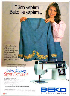 "Ben yaptım, Beko ile yaptım" Kalıp takmak, sökmek yok. Çevirin düğmeyi, seçin deseni; bilinenden iki kat daha büyük gerçek fisto yapın... Türkiye'nin en marifetli dikiş makinesi Beko Zigzag Süper Fistomatik VE DİĞER MARİFETLERİ Düz dikiş, 7 mm zigzag dikiş, kenar kıvırma, gizli dikiş, teyel, ilik açma, fermuar-düğme dikme, kapitone, kordon dikiş, overlok. * Tam devir. * Otomatik desen seçme. * El yakmayan içten gizli lamba. * Ücretsiz ilk çalışma ve tanıtım. * Yurt çapında ücretsiz kurslar ve servis güvencesi. BEKO Bir dünya markası (1995) |