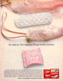 So oder so. Die tagliche Pflege heisst Carefree. Well Sie anspruchsvoll sind, verlangen Sie auch von Ihrer taglichen Intimpflege etwas mehr. So entsheiden Sie sich für Carefree. Denn Carefree Slip-Einlagen sind duftig, samtweich und dennoch sehr formstabil. Sie haften sicher in jedem Slip. Und sind besonders saugfahig, damit der Intimbereich immer trocken und hygienisch sauber bleibt. Ob Carefree oder Carefree einzeln verpackt - geben Sie Ihrer Pflege diese besondere Qualitat. Carefree. Die gepflegte Frau benutzt sie taglich. (1989) |