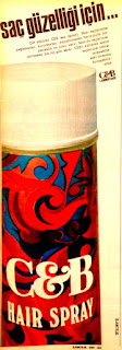 SAÇ GÜZELLİĞİ İÇİN... Çift etkilidir CEB saç spreyi. Hem saçlarınıza yağlamadan, kurutmadan, yapıştırmadan harikulade bir parlaklık ve koku verir, hem de saçlarınızı görünmez bir tül gibi sarar. CEB'i sıktıktan sonra saçlarınızı tekrar tarayabilir, eski formunu koruyabilirsiniz. CEB LABORATUVARI CEB HAIR SPRAY (1972) |