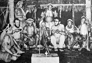 ABDULLAH VE İSA ÜMİTVAR KARDEŞLERİN DÜNYA TURUNDAN AMAZON KAFATASÇILARI İsa ve Abdullah Ümitvar (Issa ve Abdullah Omidvar) adlı iki kardeşiz. İki yıl öncesine kadar Tahran üniversitesinde etnoloji tahsil ediyorduk. Fakat sonrasında dünya üzerindeki insanları ve yurtlarını görmek, aralarında yaşamak suretiyle daha iyi tanıyabileceğimizi düşündük. Hayatımızın son 10 yılını (1954-1964) bu işe hasrettiğimiz taktirde dünyanın hiçbir üniversitesinin öğretemeyeceği, hiçbir kütüphanede bulamayacağınız kadar bilgi sahibi olduk. Bu hayalimizi gerçekleştirmemize en büyük engel paraydı elbette. Şahsi gelirimiz bu kadar uzun gezilere yetmezdi. Derken bir hal çaresi geldi aklımıza. Başta Hayat dergisi olmak üzere dünyanın tanınmış gazete ve dergilerine makale ve fotoğraf satmak, üniversitelerde konferanslar vermek ve gördüğümüz yerlerin filmlerini göstermek vasıtasıyla projemizi finanse edebildik. Ve yola düştük. Motosiklet ile, en ufak bir dengesizliğin bizi alabora edebileceği kayıklarla, şileple, hatta otostop ile on binlerce kilometre yolu katettik. Fakat en büyük hayalimiz "Yeşil cehennem" denen Amazon ülkesine gitmekti. Nihayet Kolombiya'nın başkenti Bogata'dan uçakla yola çıktık. Birinci hedefimiz Rio Vaupés'in kaynağı idi. Burada yerlilerin kullandıkları o hafif kayıklardan birine binerek sırayla Kubeo Kızılderililerini, Kafanes'leri ve Yagua'ları ve son olarak "kelle avcısı" olarak nam salmış Ekvador'un Jivaro'larını ziyaret ettik. Bu arada çeşitli tehlikeler atlattık, fakat hepsinden önemlisi çok az kimsenin görmeyi başarabildiği bir kıta büyüklüğündeki ülkeyi tanımış olduk. Üst fotoğrafta; Amazon'da ölümle burun buruna gelmek pahasına yerlilerin arasına giren Ümitvar kardeşler, bir kabile reisi ile sohbet esnasında görülmekte. |