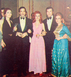 Kızılay Şişli şubesinin balosundan bir başka köşe : Şeref konuklarının bulunduğu masa. (Soldan) : Kuzey Deniz saha kumandanı Koramiral Bülend Ulusu, Kızılay genel başkanı Prof. Dr. Recai Ergüder, Mirzat Ulusu, Şehbal Harput ve Tümgeneral Mehmet Harput. |